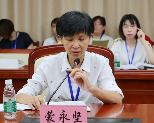 蒙永坚代表女教职工委员会作表态发言。她说,表达和维护女教职工的合法权益是工会女教职工委员会的基本职责,委员会将切实履行职责,充分发挥职能作用,为学校改革发展服务,为女教职工服务,团结动员广大女教职工积极投身于学校的教育教学改革,为推进学校改革发展而努力奋斗。