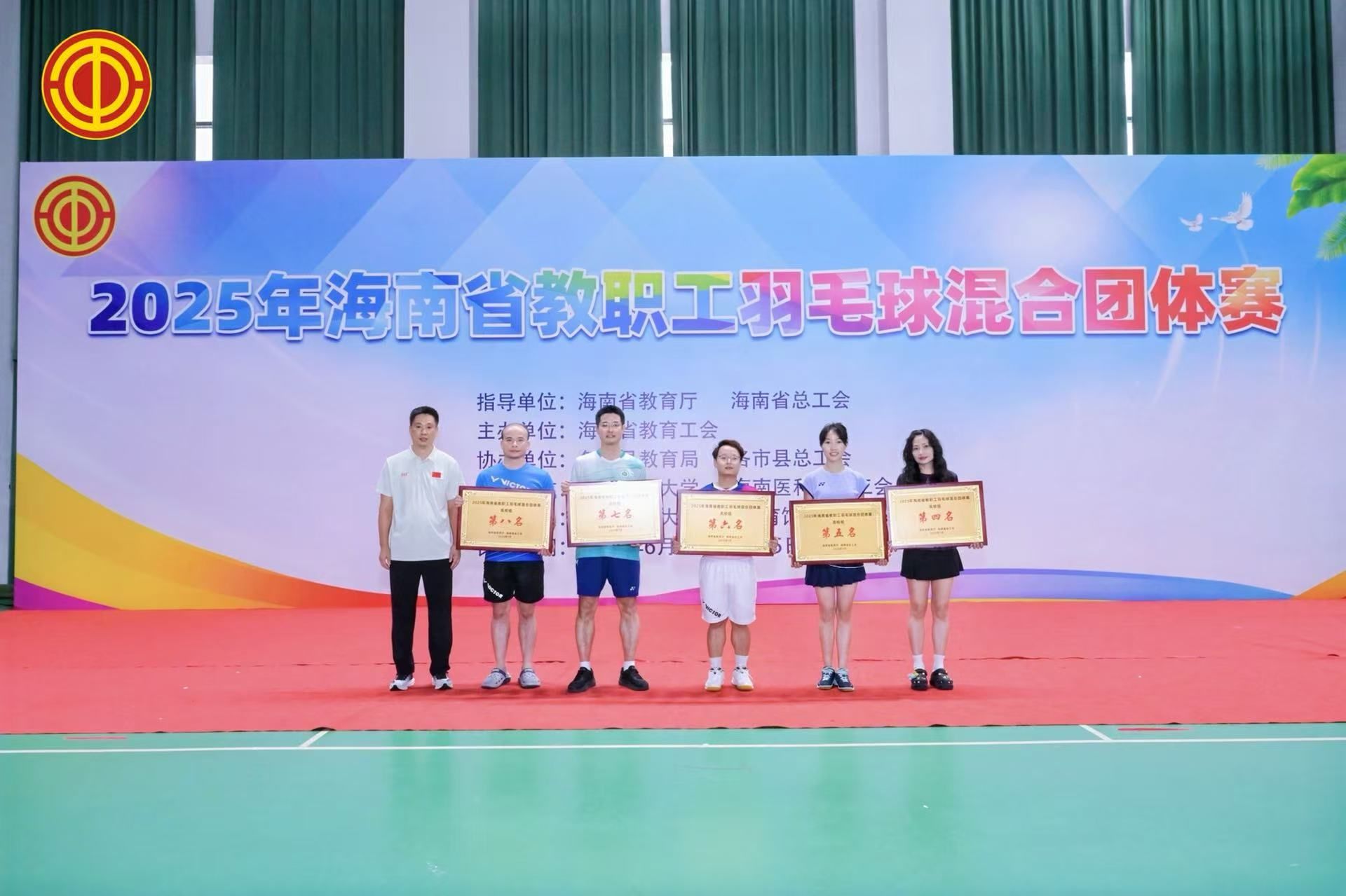2025年海南省教职工羽毛球混合团体赛于6月30日至7月5日在海口举行。太阳成集团tyc教职工羽毛球队在赛场上奋勇拼搏,凭借出色发挥与良好赛风,荣获团体第六名,学校获得体育道德风尚奖。