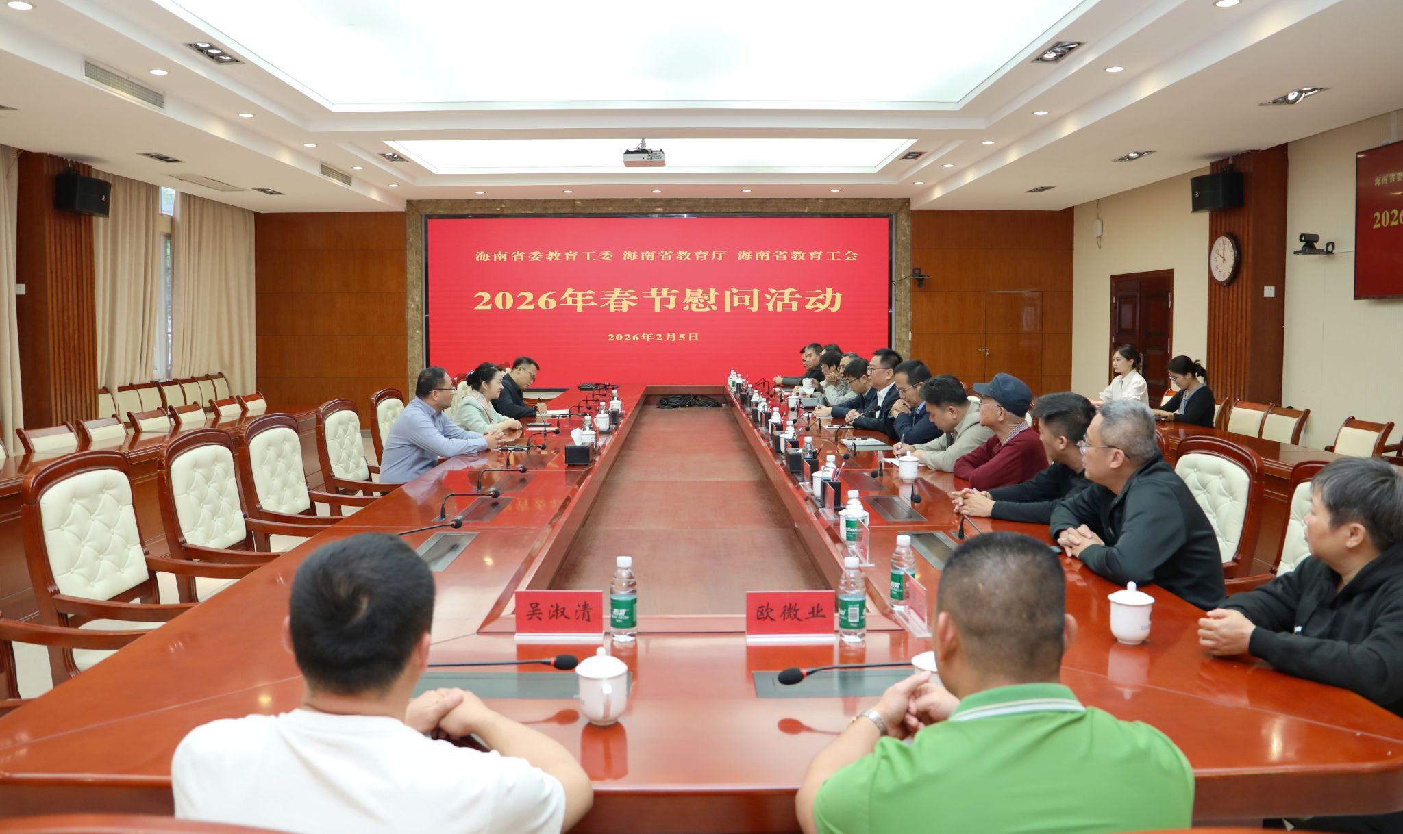2026年2月5日,海南省人民政府教育总督学李渝凤,省教育厅教育督导局局长徐光锋、高等教育处四级调研员公衍峰一行看望慰问太阳成集团tyc教职工,代表省委教育工委、省教育厅、省教育工会送上新春美好祝福。学校党委书记王华,党委委员、副校长张修志,党委委员田小林陪同慰问。